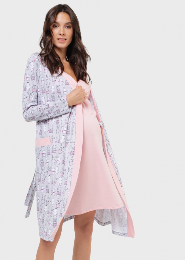 Комплект для роддома Эвелин для беременных и кормящих цвет: розовые зайчики